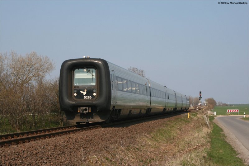 Der EC36 von Koebenhavn nach Hamburg Hbf verlässt soebend den Bf Puttgarden und macht sich auch den weg nach Hamburg. Puttgarden 15.4.2009 Michael Berling