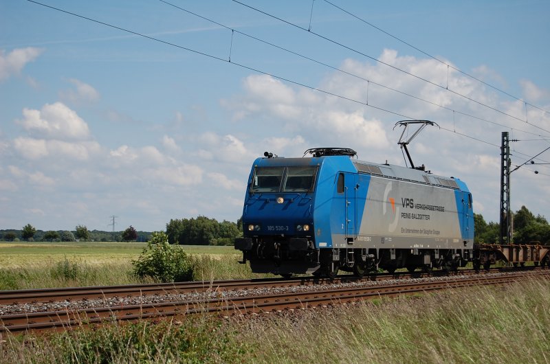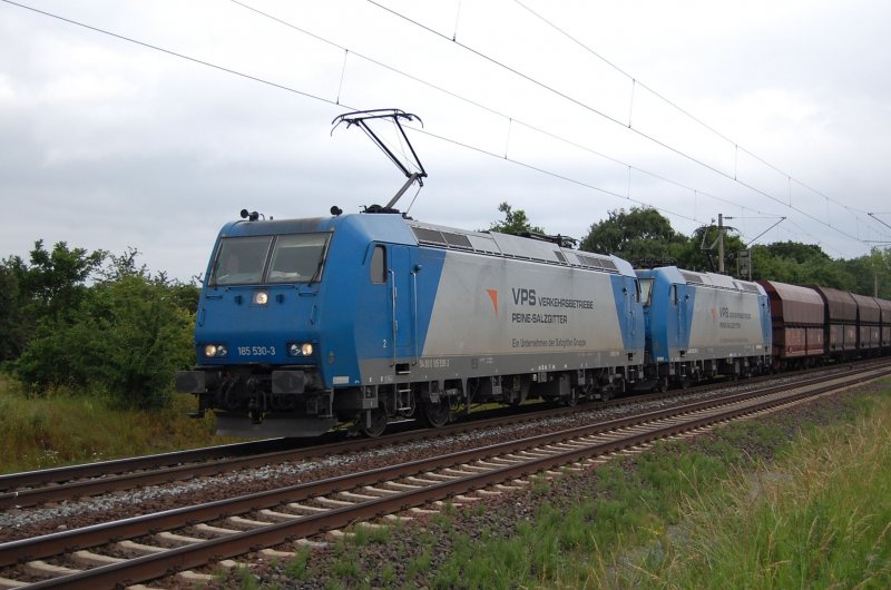 185 530-3 und Schwesterlok 185 519-6 VPS am 04.10.2009 bei Woltorf kurz vor Überquerung des Mittellandkanals.Im Hintergrund ist ein Regenbogen zu sehen Edmund Schulz