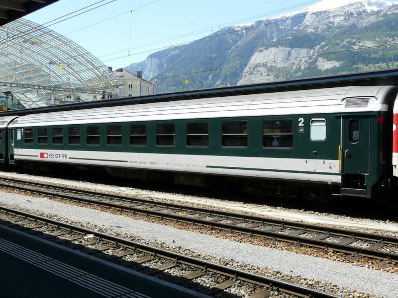 SBB - Personenwagen 2 Kl. B 51 85 21-70 460-2 im Bahnhof von Chur am 07.05.2009