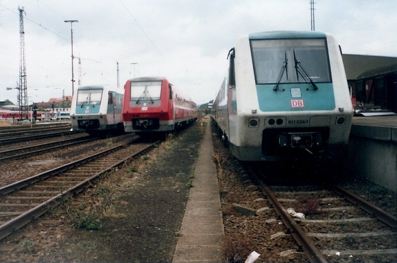 Abgestellt im Oktober 2000 in Kaiserslautern von links 611 015,mitte  611 048 und rechts 611 024.