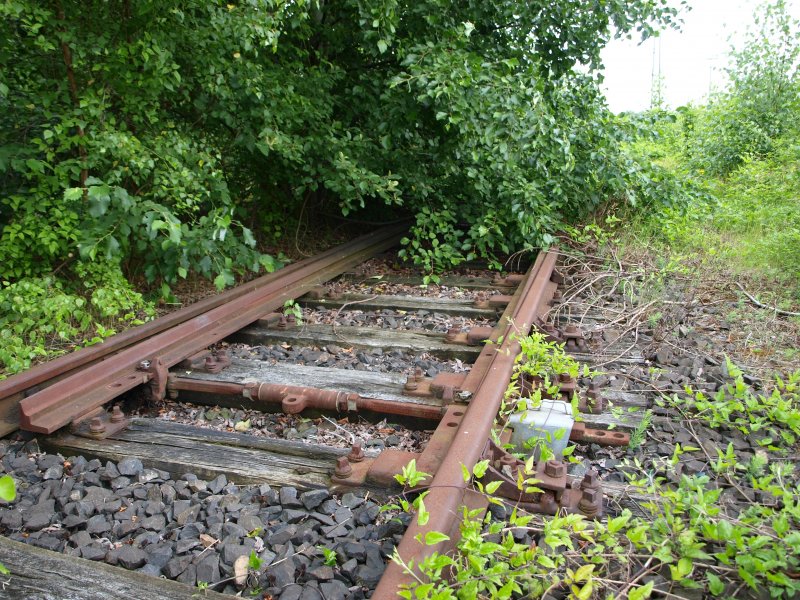 Ein Rest des ehmaligen Gleis der Finnebahn im Bf Laucha (Unstrut). Die Finnebahn zweigte früher im Bf Laucha von der Unstrutbahn ab und führte über Lossa bis nach Kölleda; 13.09.2009 Frank Thomas