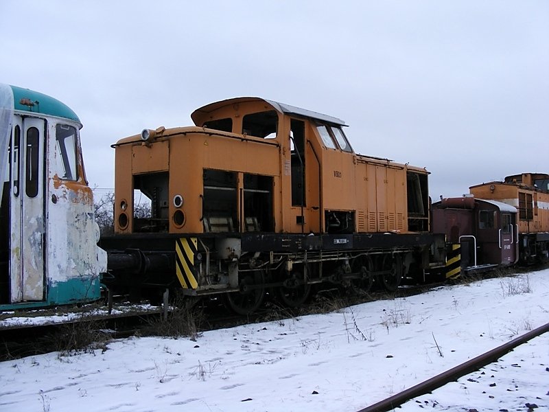 Die V60.1 der R&S - Rail & Service GmbH dient als Ersatzteilspender für die MaLoWa in Klostermansfeld. Die Lok wurde 1970 an den VEB Kali- und Steinsalzbetrieb Saale in Bernburg als Werklok 3 ausgeliefert. Aufgenommen am 20.2.2009. Christopher Pätz
