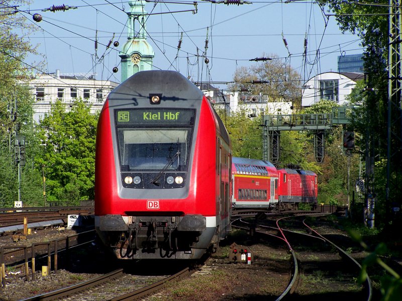 RE 21074 "SH-Express" von Hamburg Hbf nach Padborg st schlängelt sich am 29.08.09 über die Verbindungsbahn Richtung Dänemark. Aufgenommen bei unserem bb.de Treffen in Hamburg-Dammtor. Lars Backhaus