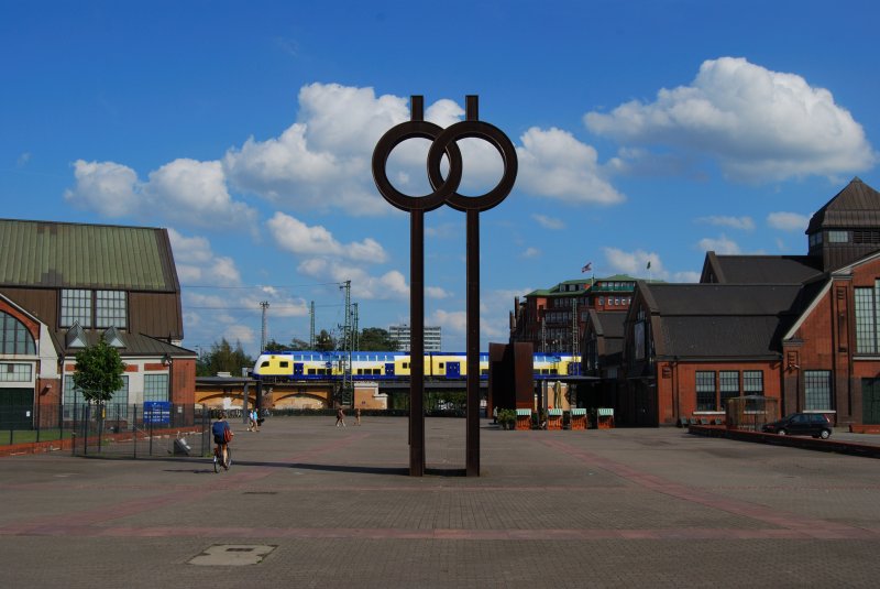 RBH-Einstellanlage vor der Berge-Halde (oder in Neudeutsch: dem Landschaftsbauwerk) Hohe Ward mit dem Himmel-Observatorium. Recklinghausen - Herten - Wanne-Eickel 30.03.2009 Klaus Muhs