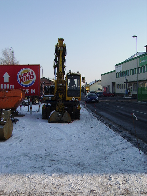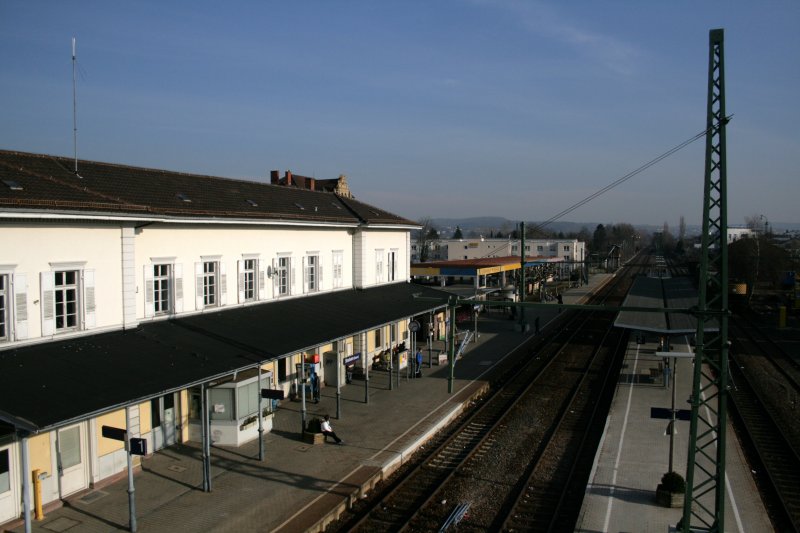 Bahnhof Sinsheim von Fussgängerüberweg aus. Blickrichtung Westen. Neue Signalanlagen und Masten für Elektrifizierung. Bild aufgenommen am 3.2.09 Klaus-Henning Kluge