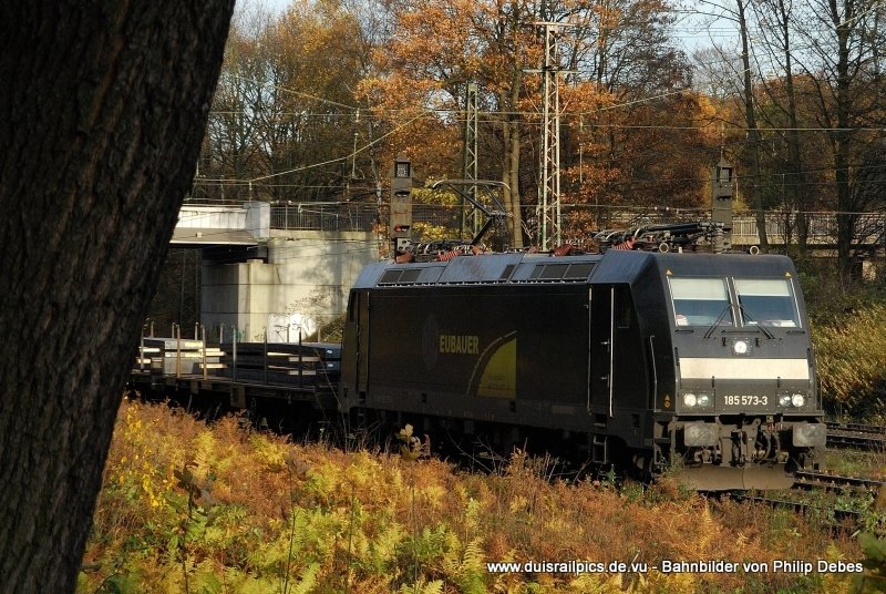Hier zeigt sich der Herbst von seiner schönen Seite. Nachschuß auf einen seltenen Gast im Grenzverkehr nach Belgien, 185 573-3 vom Railservice Alexander Neubauer (RAN). Die Lok kommt vom Gemmenicher Tunnel auf der Montzenroute nach geleisteter Schubhilfe auf dem linken Gleis nach Aachen zurück, um 2 Züge zu überholen die vor Aachen West vor roten Signalen stehen. Mario Schürholz