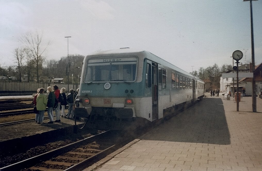 Der Bahnhof von Bad Doberan am 12.08.2009 um 14:52 Uhr. Hier verkehrt im Stundentakt ein Regionalexpress der Line 8 zwischen Wismar und Tessin sowie sechs Mal am Tag die Regionalbahn der Linie 12 nach Graal Müritz. Außerdem fährt von hier aus die Schmalspurbahn "Molli" nach Kühlungsborn West. Eisen Bahn