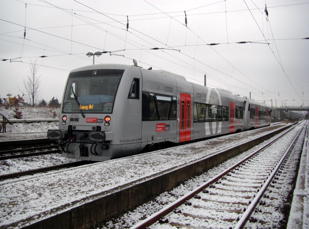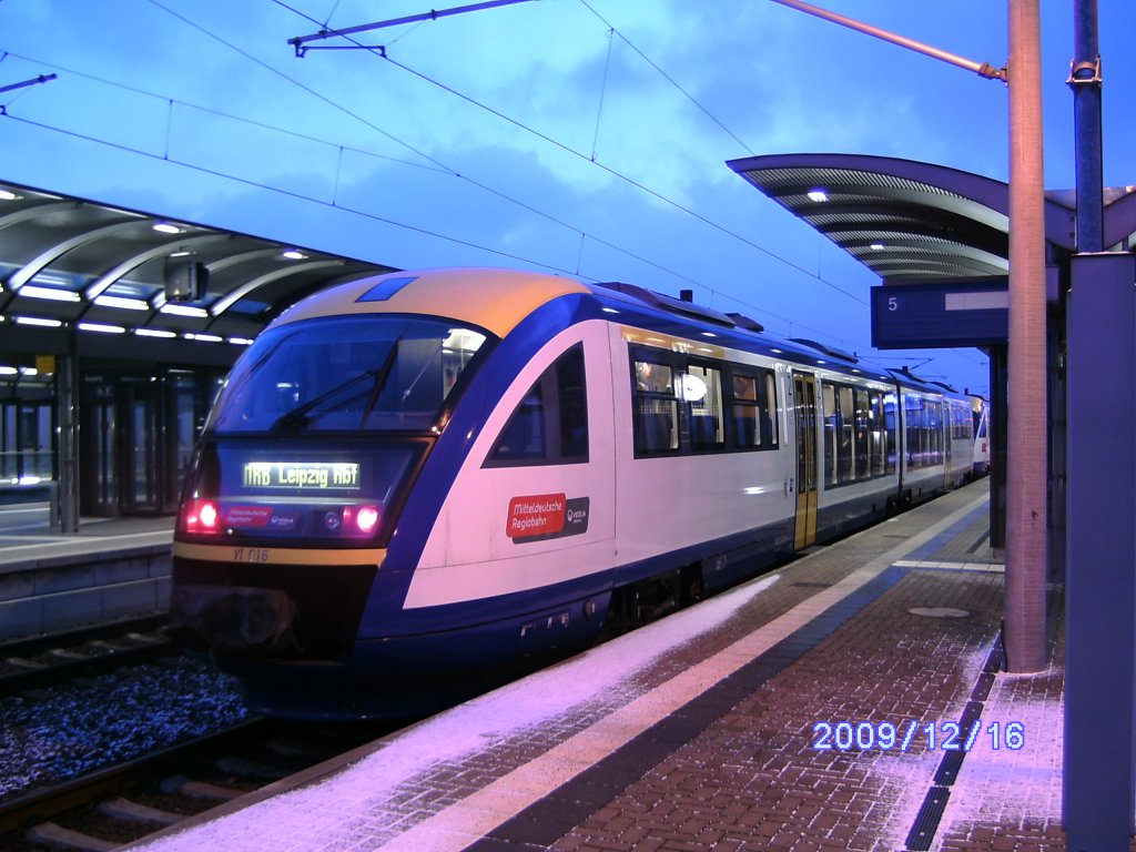 VT616 der MitteldeutschenRegiobahn übernahm mit VT610 am 16.12.2009 die MRB87493 von Bitterfeld nach Leipzig Hbf.