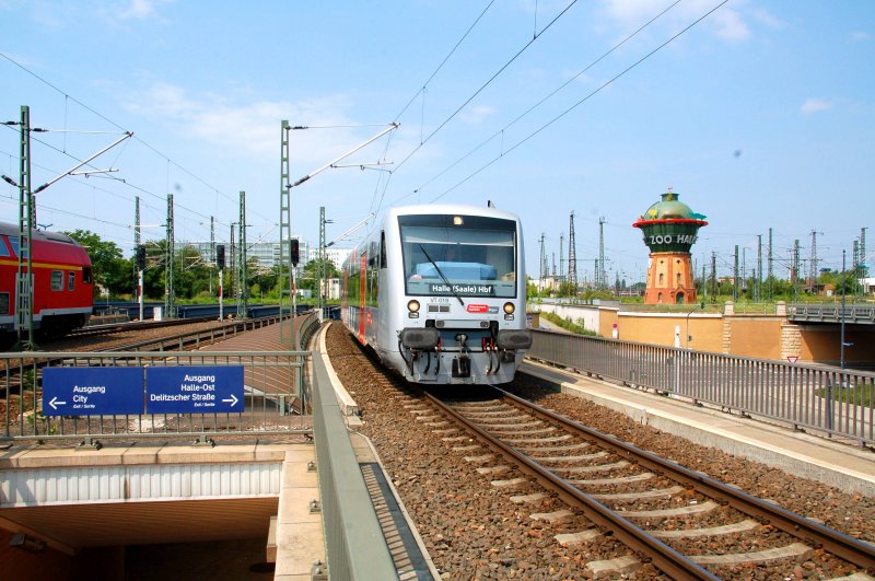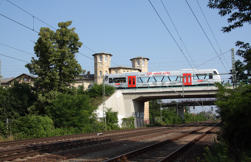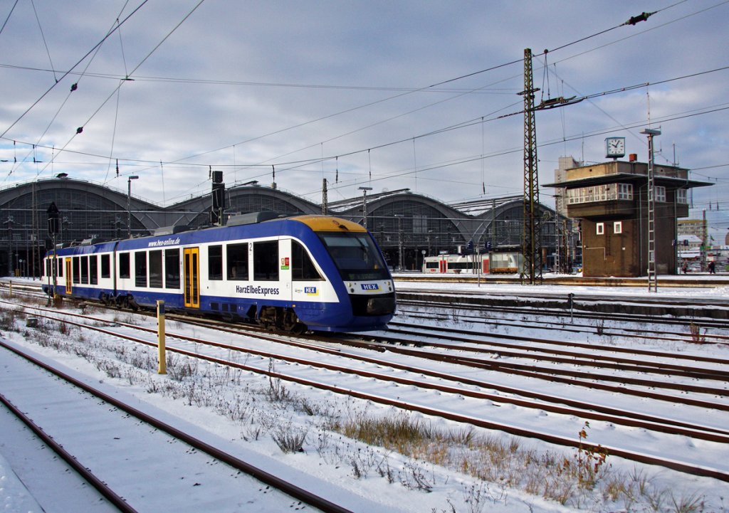 Nein, das ist nicht der Harz-Elbe-Express! VT 808 ist zur Aushilfe in Leipzig und unterstützt seine "Kollegen" von der Mitteldeutschen Regiobahn auf deren neuen Strecken rund um Leipzig. Hier verläßt er als MRB2 88529 den Leipziger Hauptbahnhof mit Fahrtziel Borna bei Leipzig. René Richter