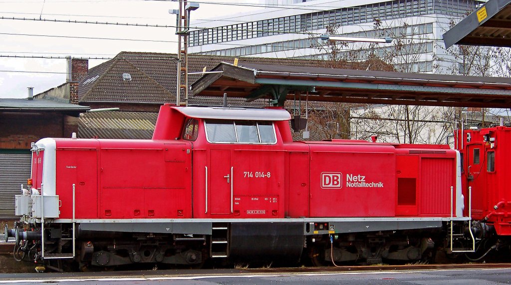 Der Rettungszug der DB Notfalltechnik wartet in Kassel auf einen Einsatz. Hinten schiebt die 714-009-8, vorne zieht die 714-014-8 die insgesamt fünf Transport-, Sanitäts- und Löschmittelwagen (18.03.2009). Mathias Engelhart