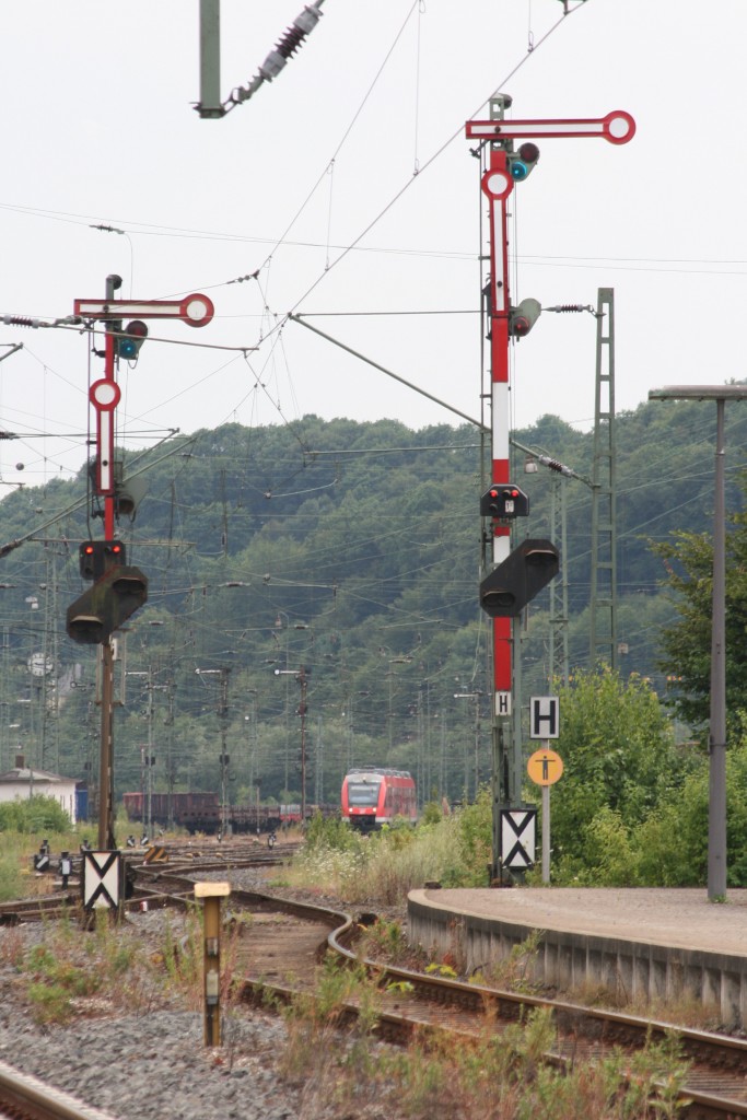 26. Februar 2010, Die im Bahnhof Breitengüßbach immer noch vorhandenen Formsignale reizten mich schon lange zu einem Fotostopp. Heute passte es auf der Rückfahrt von Erlangen. Der Lokführer einer RB nach Lichtenfels freut sich über Hf1. (Heute natürlich genau so über das im Zuge der Einbindung der Neubaustrecke nach Erfurt installierte grüne Lämpchen). Jürgen Krause