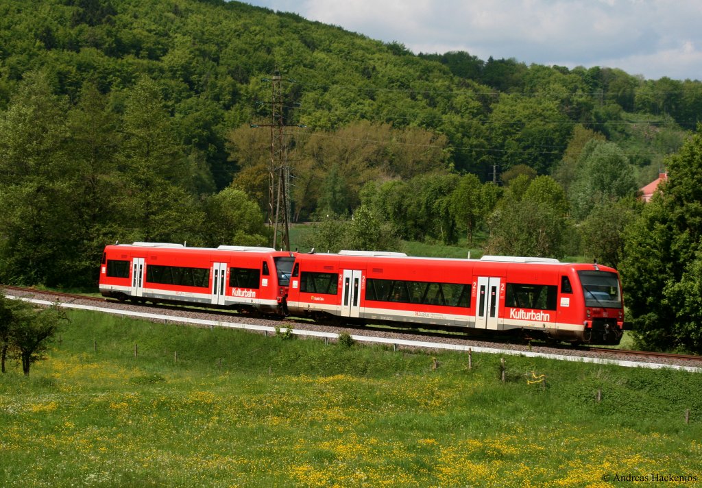 An Pfingsten ging es wegen den mit 218 bespannten Umleiterzügen nach Singen nach Tübingen. Dort war ich ziemlich zeitig angelangt, sodass auch noch Normalverkehr in Form von 650 309 zusammen mit einem Schwesterfahrzeug auf der Fahrt nach Horb aufgenommen werden konnte. Als Aufnahmedatum kann der Pfingstmontag des Jahres 2010 genannt werden; der Aufnahmeort ist Tübingen-Weilheim. Pascal Ost