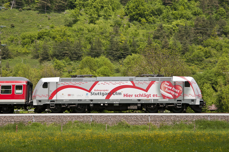 218 495-0 und 146 227-4 "Bahnprojekt Stuttgart-Ulm" ( am Zugschluss) mit dem RE 19609 (Stuttgart Hbf -Singen (Hohentwiel)) am 23. Mai 2010 bei Mühlen.
