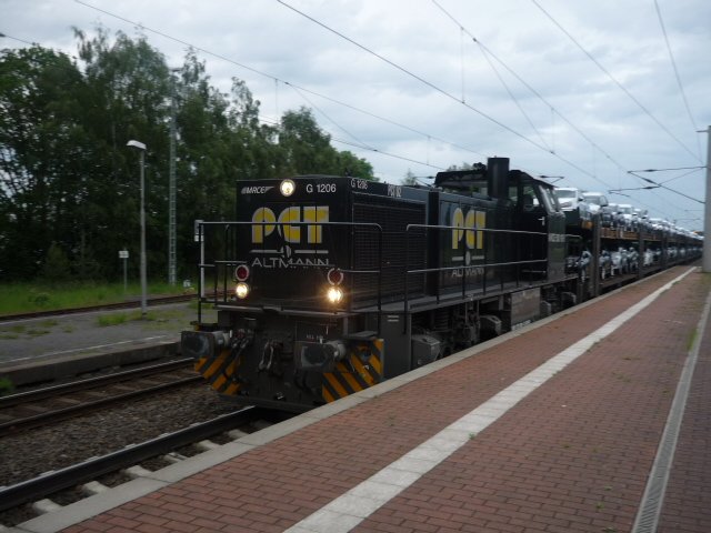 Wenn es sich nicht gerade um einen Umleiter handelt,kommt in Güstrow nicht häufig ein Güterzug vorbei.Am 03.Juli 2010 erwischte ich,das seltene Glück,einen Güterzug,gezogen von der PCT ES64 F4-035,mit Betonschwellen bei der Durchfahrt in Richtung Bützow.Da der Zug überraschend kam,schaffte ich es nicht mehr auf die gegenüberliegende Bahnsteigseite. Mirko Schmidt
