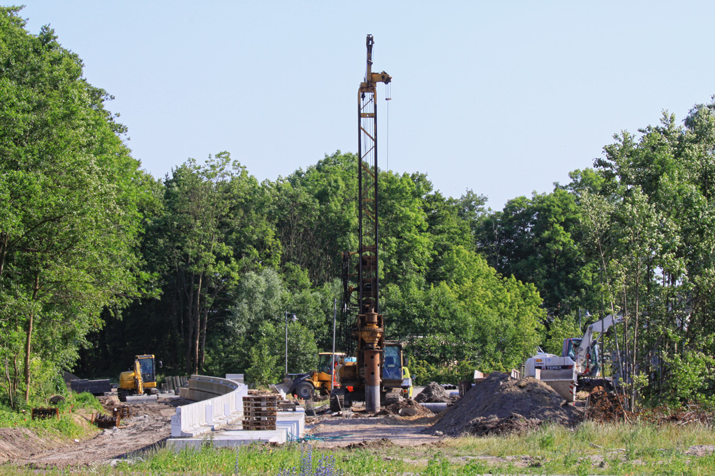 Am 02.03.2009 begannen die offiziellen Bauarbeiten der DB (bzw.deren Subunternehmen) an der Gleisverlängerung in Ueckermünde. Zu deren Verlauf gehören zwei neue Haltepunkte sowie zwei neue Bahnübergänge. Das Baugeschehen wurde am 15.08.2009 abgeschlossen. Jedoch begann nach kurzer Zeit der Zugangsbereich zum Bahnsteig abzusinken. Diese Nachbesserung dauerte bis Ende November 2010. Ab diesem Zeitpunkt wurden Bahnreisende in Ueckermünde mit einem Schmuckstück begrüsst. - Bohrpfahlgründung, gebohrt wurde bis zu einer Tiefe von 19 Metern. - 24.06.2009 Gerd Wiese