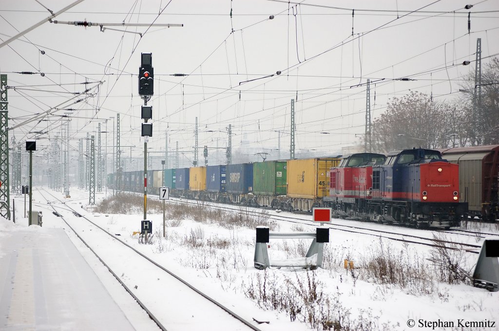 745 701-3 von der tschechischen RailTransport ex DR 112 260-5 und die Adam 22 "Spike" (202 241-6) ex DR 112 241-5 mit einem Containerzug in Magdeburg in Richtung Magdeburg-Neustadt. 22.12.2010 Stephan Kemnitz