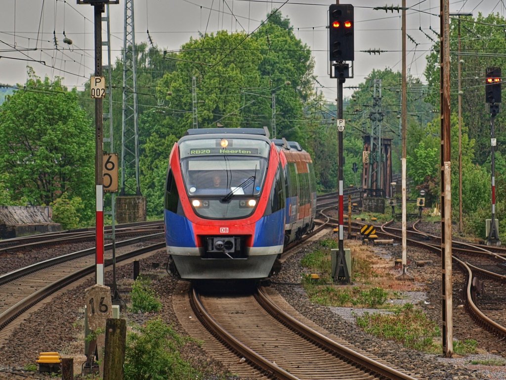 Euregiobahn RB20 am 14.05.2010 von Aachen kommend auf dem Weg nach Heerlen (NL) bei der Einfahrt in den Herzogenrather Bahnhof auf Gleis 3. Mario Schürholz