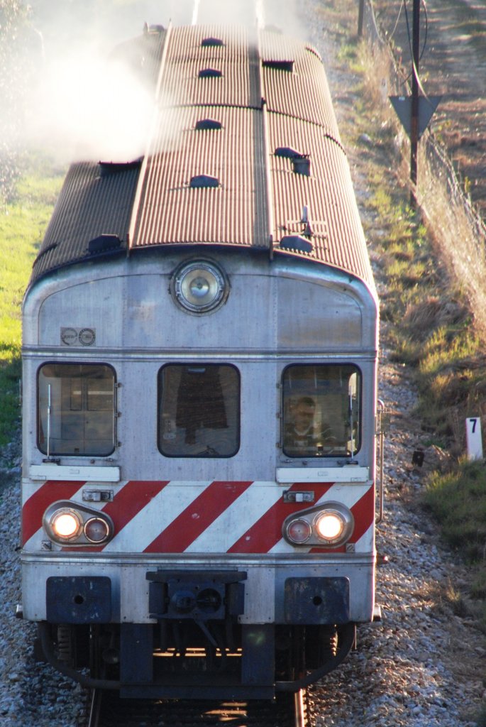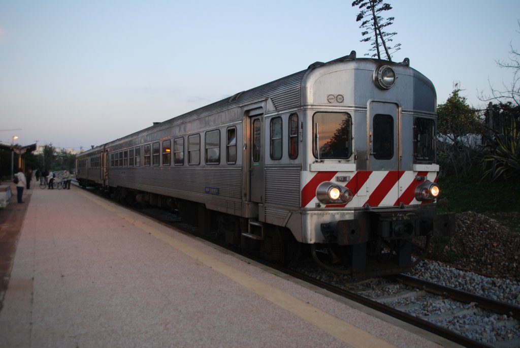 CONCEIÇÃO de Tavira (Distrikt Faro/Concelho Tavira), 11.02.2010, ein Regionalzug nach Vila Real de Santo António hat soeben den gleichnamigen Bahnhof verlassen und unterquert in Kürze die EN 125 Reinhard Zabel