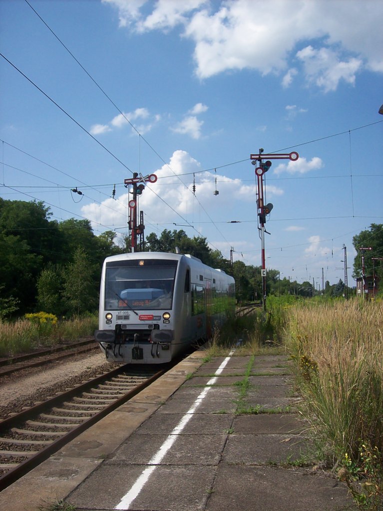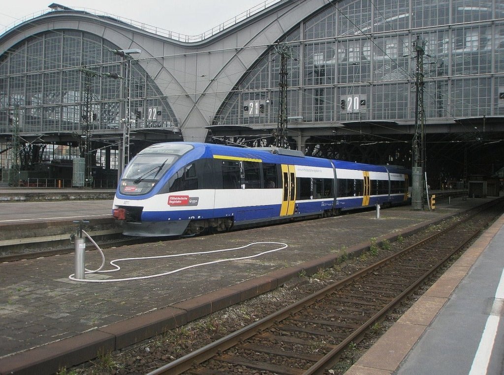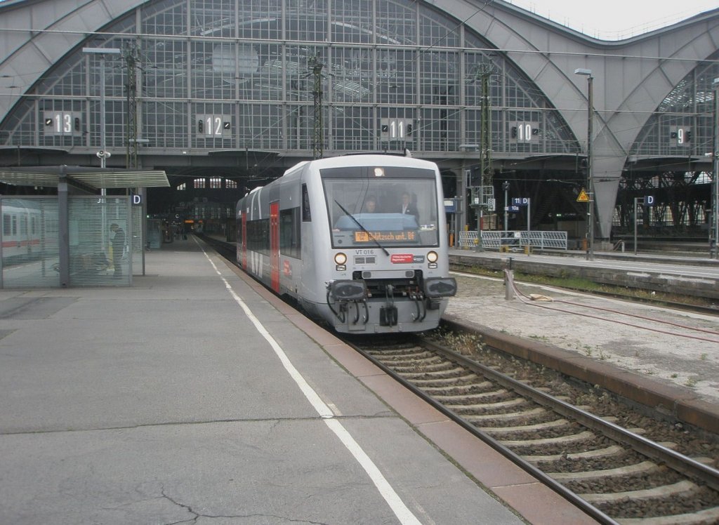 VT 003 der MRB erreicht am 30.09.10 den Leipziger Hbf. Der Triebwagen kam vom Flughafen Leipzig/Halle und fuhr auch dorthin wieder zurück. Martin Schneider