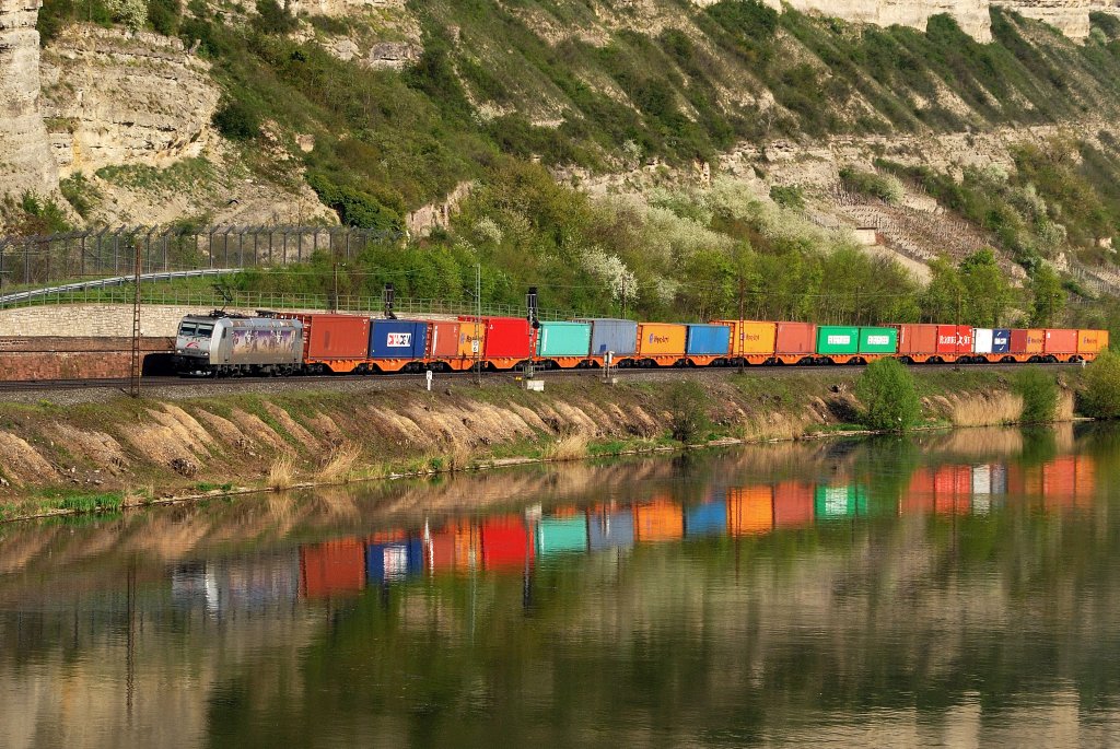 Als Bremslok diente die Schweiz-Lok 185 142-7, hier aufgenommen am Zugschluss von TEC41051 bei Einfahrt in den Lumetunnel unterhalb von Lavorgo (Gotthard Südrampe) (03.06.2010) Herbert Graf