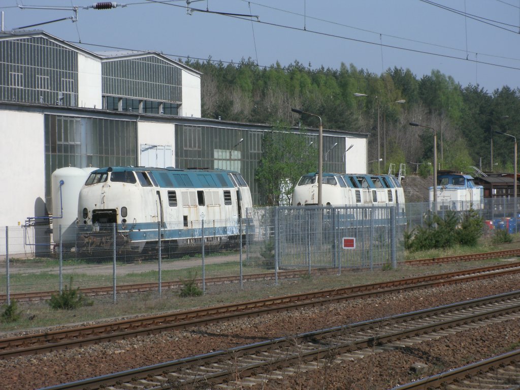 Von der Gegenseite aufgenommen,standen am 23.April 2011 im Arrivawerk Nord Neustrelitz: vorn OSE 430 (ex.DB 221 137),dahinter OSE 428(ex.DB 221 138) und auch die EBW V60.20. Mirko Schmidt