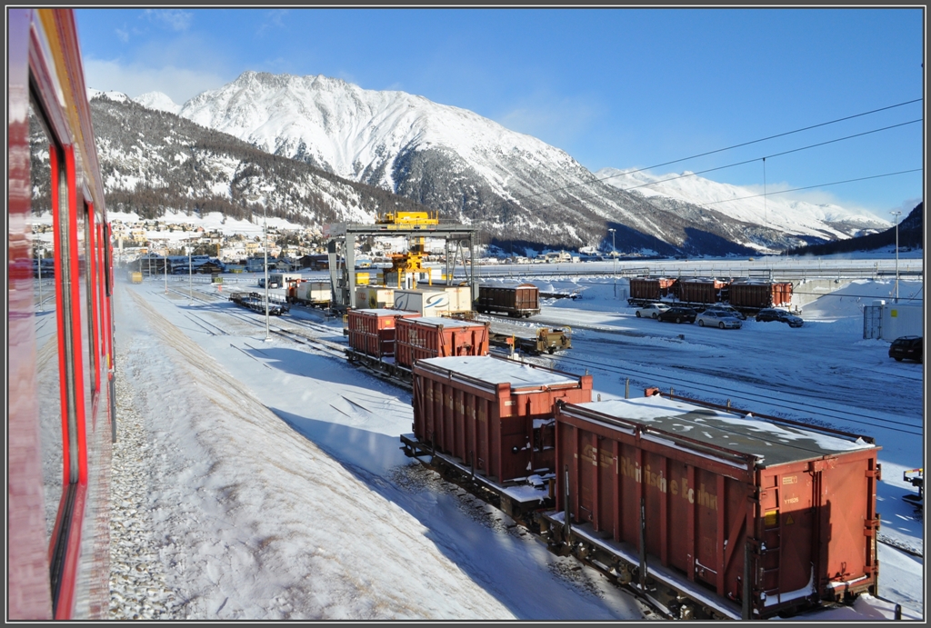 Güterumschlagsanlage zwischen Samedan und Punt Muragl. Dahinter befindet sich der Flughafen, der in Kürze wieder mit Jets aus aller Welt gefüllt sein wird. (08.12.2011) Herbert Graf