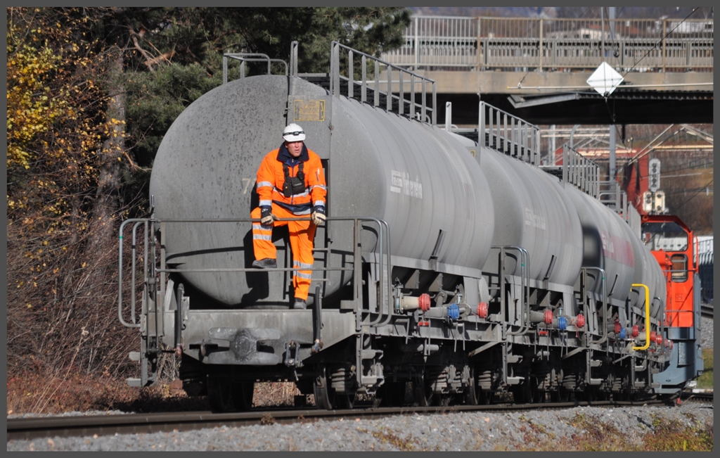 Mohrenköpfe werden diese Zementsilowagen auch genannt. Sie befinden sich auf dem Weg nach Sedrun zur Baustelle des Gotthard Basistunnel. (13.09.2011) Herbert Graf