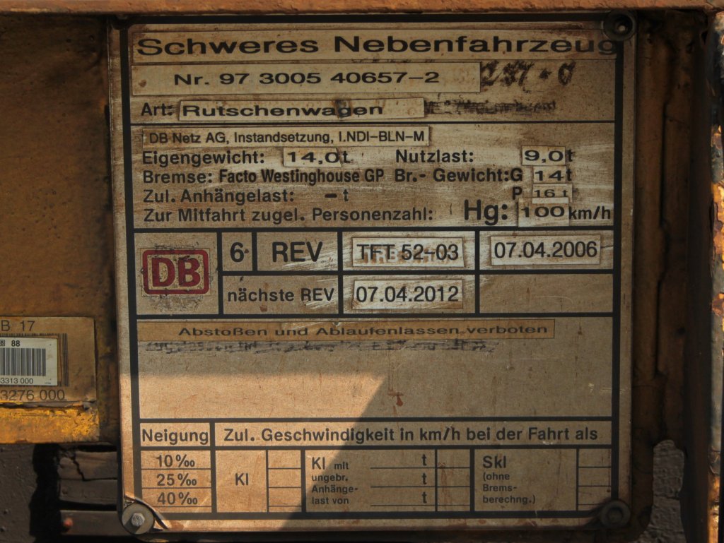 Typenschild der VW T1 Draisine 20-5011 am 03.07.2011 beim Bahnhoffest in Walheim, das von den Eisenbahnfreunden Grenzland veranstaltet wurde. Mario Schürholz
