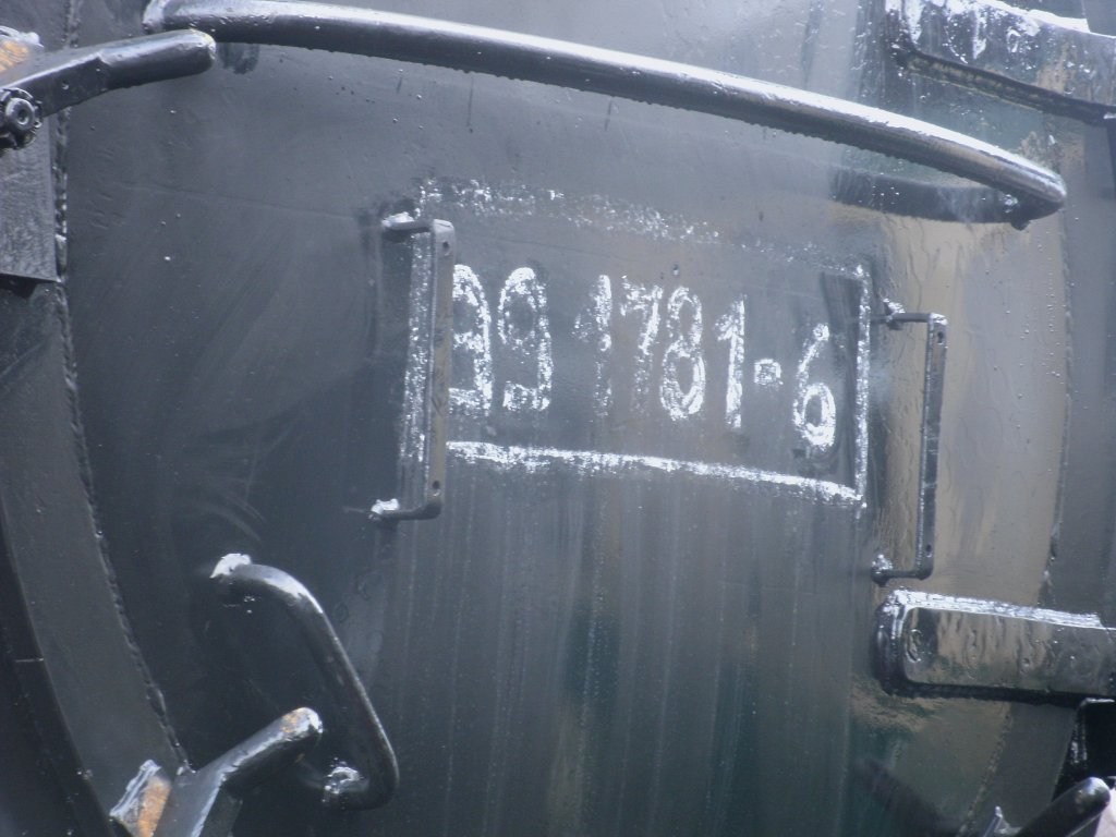 Der letzte Neuzugang beim Rasenden Roland,99 1781,hat Gegenwärtig nur an der Rauchkammertür ein mit Kreide geschriebenes,provisorisches "Lokschild".Natürlich wird die Lok auch richtige Lokschilder bekommen.Aufnahme am 03.Dezember 2011 in Putbus. Mirko Schmidt