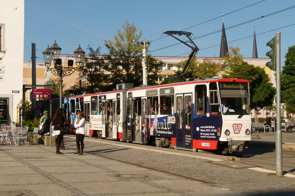 17.10.2011: Straßenbahn in Zwickau. Der "alte" Tatra verrichtet zuverlässig seinen Dienst.