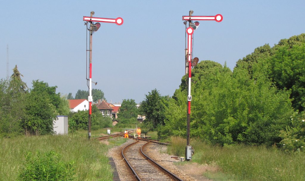 Die Natur hat auf den ehemaligen Gleisanlagen im Bf Laucha die Oberhand übernommen. Von den ehemals 8 Gleisen sind nur noch 2 befahrbar und durch das hohe Gras hier nicht zu sehen; 06.06.2011 Frank Thomas