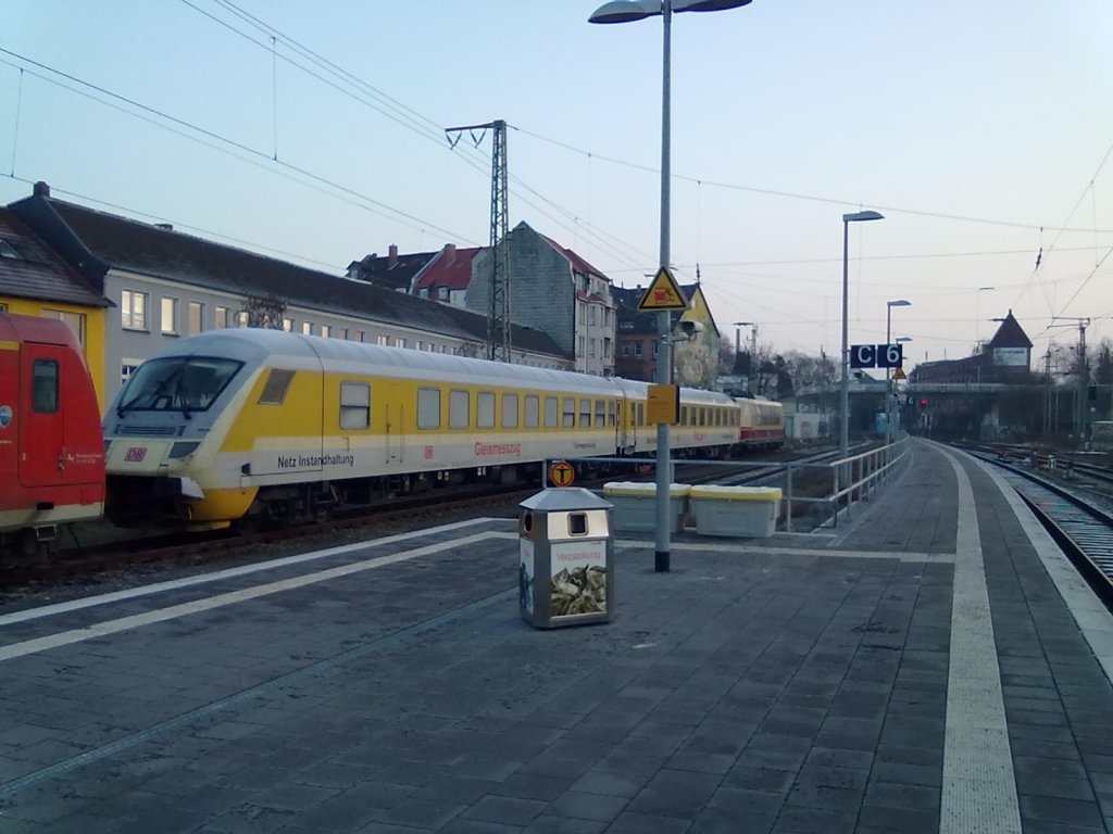 Am 09.02.2011 gegen 8:30 Uhr steht der umgebaute Steuerwagen des Messzuges in Gleis 8 des Hildesheimer Hauptbahnhofs. Zug-/Schublok ist 103 222-6. Julian S