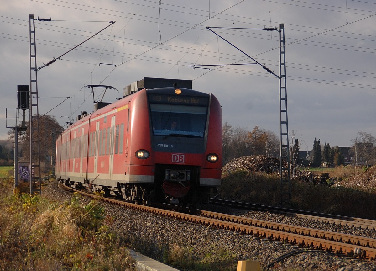 Am Nachmittag des 29.11.2011 kommt dieser RE8 Zug geführt von 425 033+425xxx bei Gubberath über die KBS 465 in Richtung Mönchengladbach gefahren. Andreas Strobel