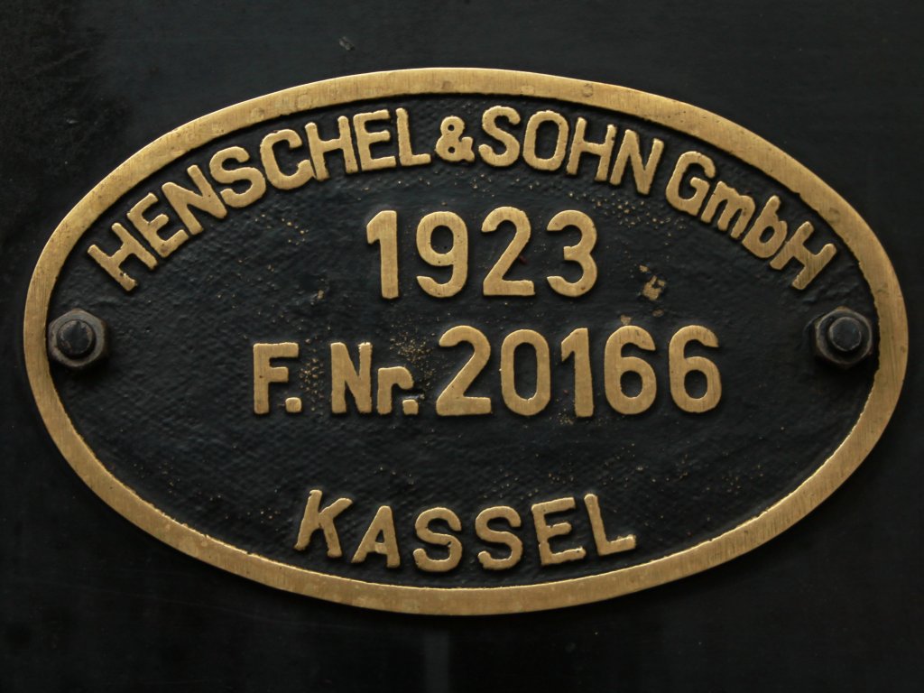 Das Fabrikschild der 78 468, die am 04.04.2011 mit dem Zug der Erinnerung in Aachen Hbf steht.