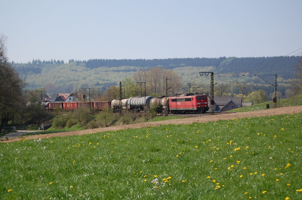 113 268-7 mit Pbz-D 2492 (im Zugverband eine BR 143 und drei Loks der BR 145) bei der Durchfahrt durch den Bahnhof Himmighausen, 01.06.2011. Hendrik Mergard