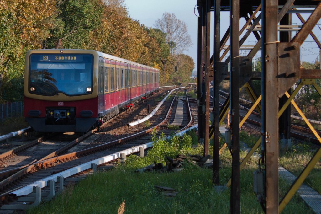 Schönes Herbstlicht fiel auf das stadteinwärts führende S-Bahngleis, als Valentin und ich uns auf dem stadtauswärts führenden Bahnsteig in Berlin Karlshorst befanden. Der kurze Sprint durch die Unterführung reichte zwar nicht mehr, um die S-Bahn vom Überführungsbauwerk aus zu fotografieren, stattdessen aber zu diesem "Notschuss", bei dem dafür das Bauwerk selbst auch noch seinen Auftritt findet. (22. Oktober 2011) Silvan
