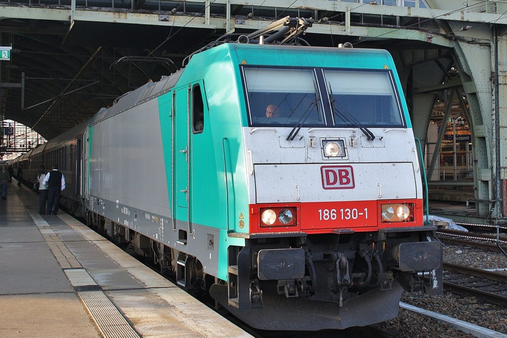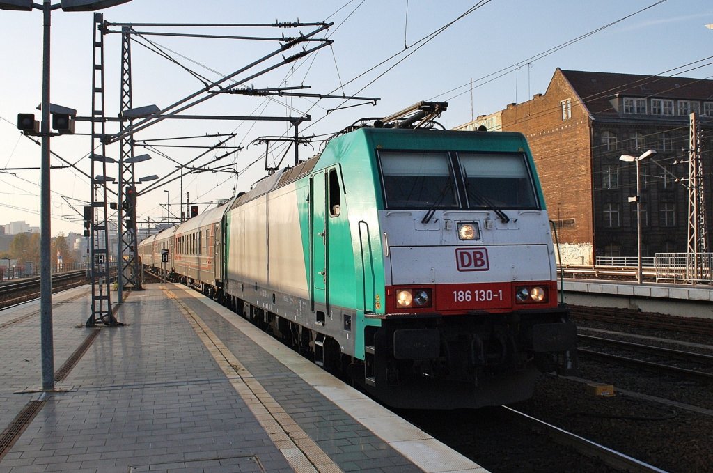 Hier 186 130-1 mit D443 von Berlin Zoologischer Garten nach Moskva Belorusskaja, dieser Zug stand am 29.10.2011 in Berlin Ostbahnhof.