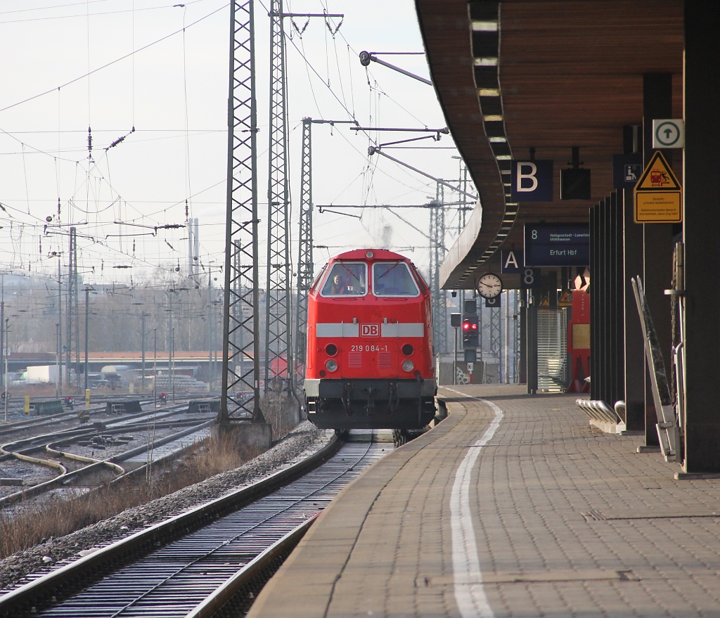 Am 08.12.2012 ging es wieder mit dem Advent-Express der Bahn von Göttingen nach Erfurt auf den Weihnachtsmarkt. Stilecht wie auch die vorangegangen Jahre mit 219 084-1. hier beim Umsetzen in Göttingen. Jens Baumhauer