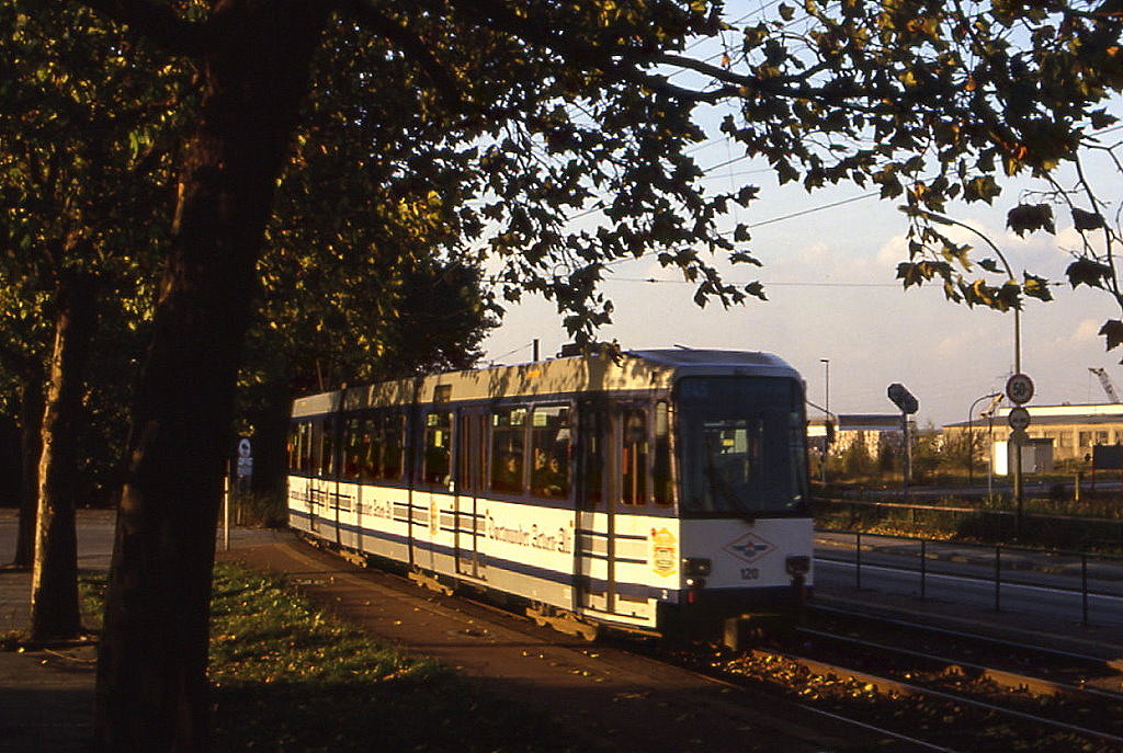 Dortmund Tw 120 im Bereich Hafen / Mallinckrodtstraße, 03.11.1985.