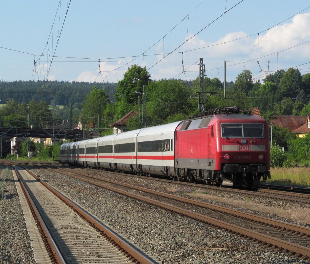 DB 101 124-6 schiebt Metropolitan - Garnitur als ICE 1605 Berlin - München, KBS 840 Saalfeld - Lichtenfels, Frankenwaldbahn, fotografiert bei Steinbach am 30.05.2012 Frank Grohe