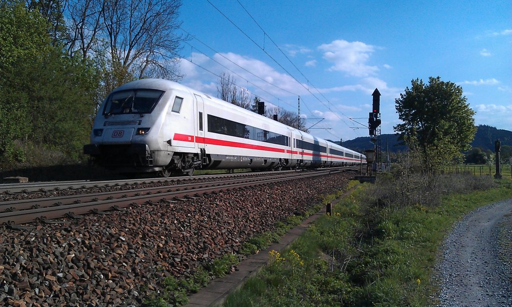 DB 101 130-3 schiebt Metropolitan - Garnitur als ICE 1105 Berlin - München, KBS 560 Leipzig - Saalfeld, fotografiert bei der Einfahrt Naumburg Hbf. am 02.08.2012 Frank Grohe