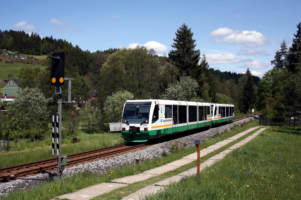 654 041 (VT41) und 654 042 (VT42) als VBG20809/81059 Zwickau/Hof - Graslitz (- Karlsbad) in Klingenthal, 11.2.012. Solche fotogenen "Gesichter" der Triebwagen waren bei Temperaturen zwischen -15°C und -30°C sowie feinstem Pulverschnee Mitte Februar möglich; dass dann auch die Sonne mal mitspielt ist schon erstaunlich=) Kevin Friedel