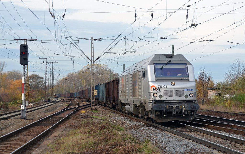 Am alten Stellwerk B1 in Bestensee rauschte am 19.11.2012 eine Diesel-Prima mit einem E-Wagen Zug von VTG vorbei im direkten Blockabstand zur RB 14. Alexander Wiemer