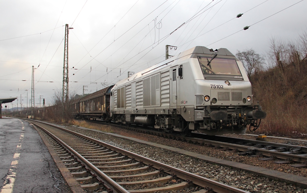 Am 17.12.2012 hatte ich auch erstmals eine "Diesel-Frettchen"-Begegnung in Eichenberg. 75102 kam mit einem H-Wagen-Zug aus Richtung Osten gen Süd. Jens Baumhauer