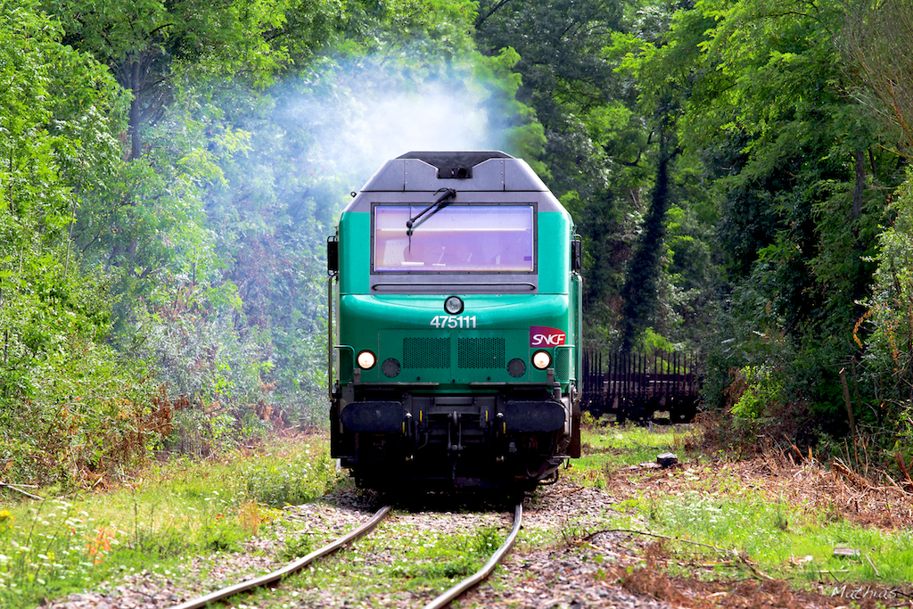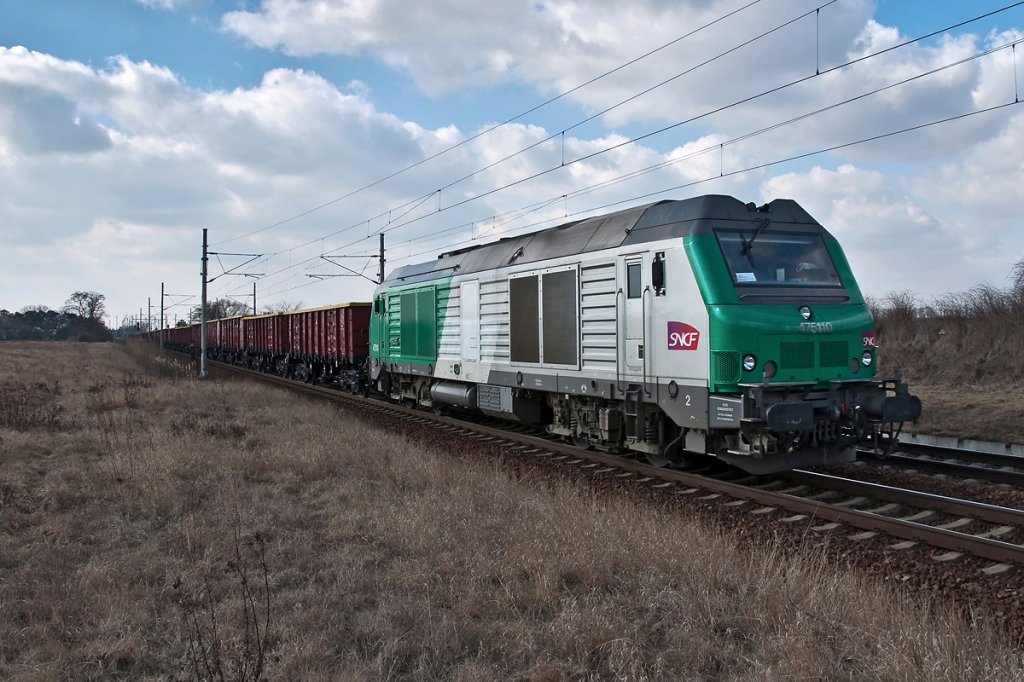 Ich versuche hier einmal den Beweis anzutreten, dass auch moderne Dieselloks ein bisschen "Show" machen können. Hier fährt die 475111 mit ihrem sehr langen Aluminiumzug bei Neuf Brisach, auf der Strecke Volgelsheim- Colmar.