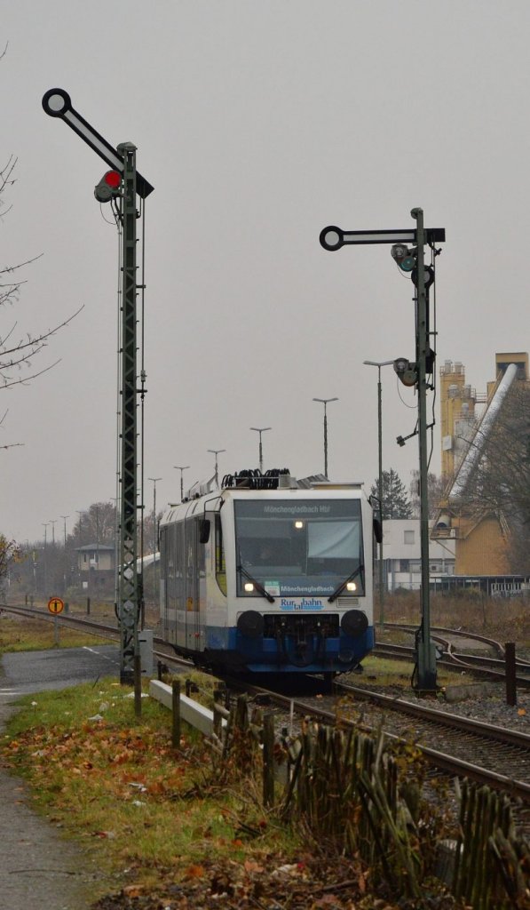 Wenn sich die Schranken am BÜ Drochaus schließen und man einen Zug genau auf dem Bahnübergang ablichten möchte, dann muß man auf der Hut sein. Denn urplötzlich schießt er aus dem Wald hervor.