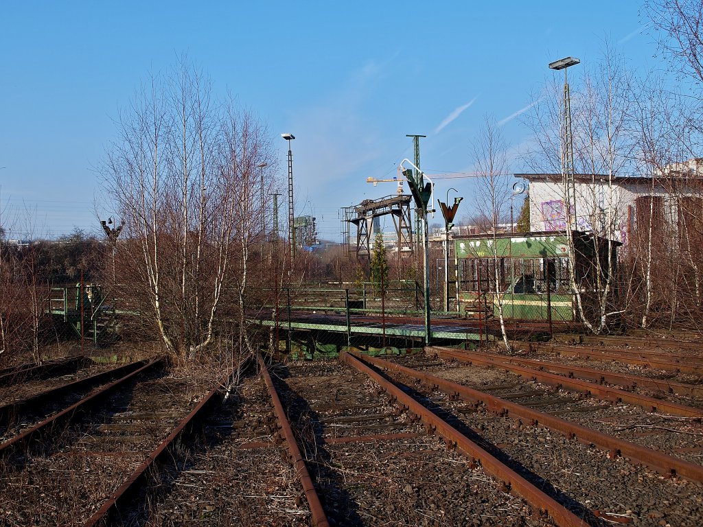 Die Reste der Drehscheibe auf dem ehemaligen BW in Aachen West. An der Drehscheibe stand bis mitte der 80er Jahre ein 16 ständiger Ringlokschuppen, der bei einem Sturm so schwer beschädigt wurde, das er bis auf sechs Stände abgerissen werden musste. Das unter Denkmalschutz stehende Gelände verfällt immer mehr. Was mit Drehscheibe und Lokschuppen geschehen soll wenn hier 2012 die Bagger anrücken und den Campus West für die Rwth bauen ist noch unklar. Mario Schürholz