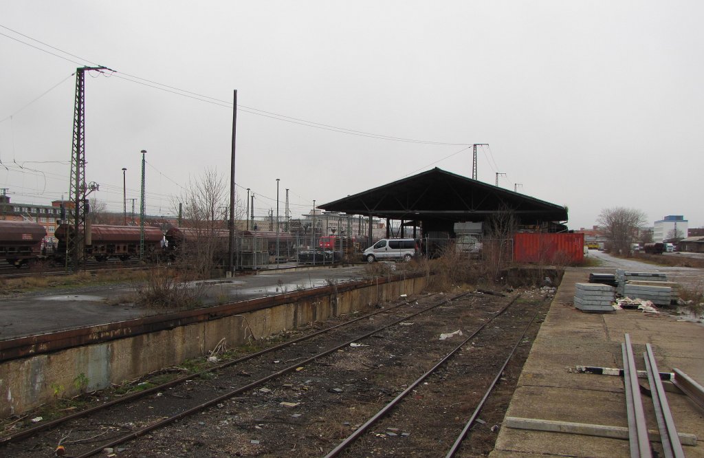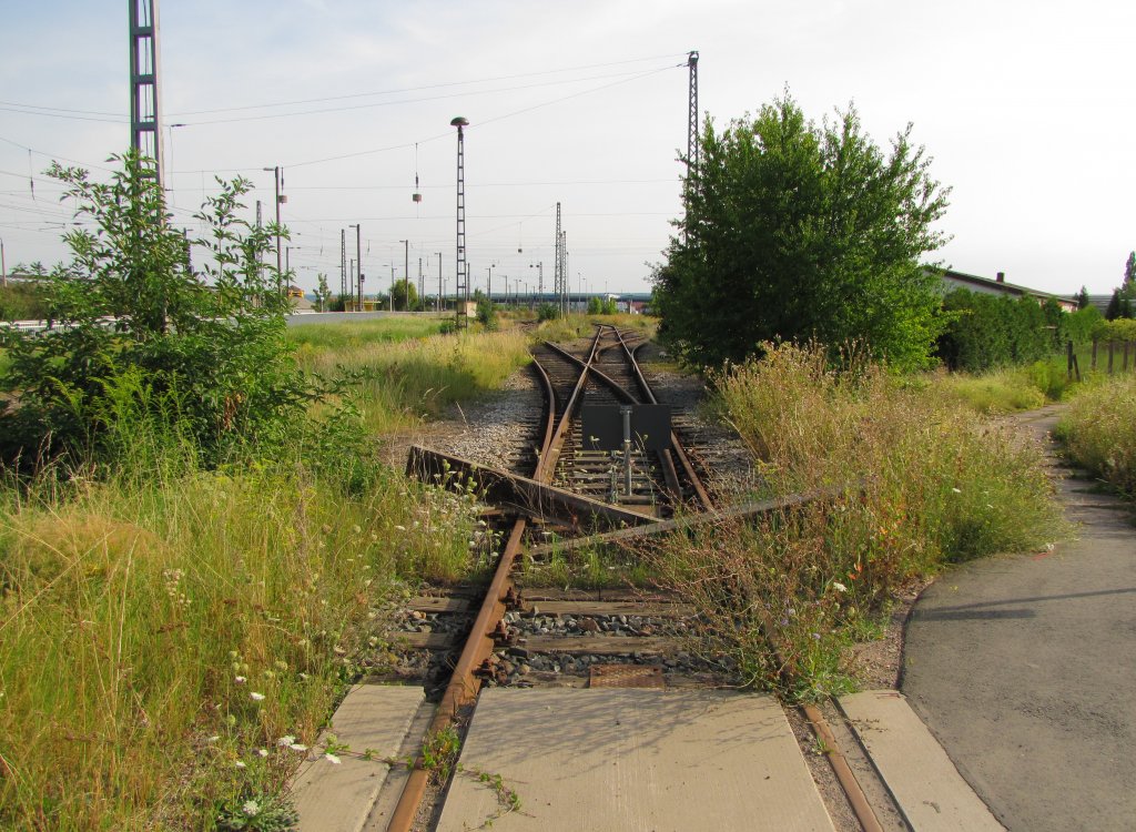 Das ehemalige Gleis zu einem Lokschuppen in Wiesbaden Ost Gbf wurde nicht gekappt, sondern einfach durch eine Mauer unbefahrbar gemacht; 03.03.2012 Frank Thomas