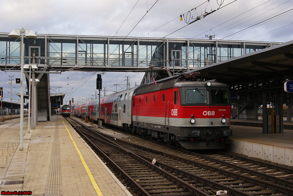 Seit Fahrplanwechsel fahren der Großteil der Doppelstockeilzüge auf der Südbahn mit der Reihe 1144, so wie hier am 13.12.12 1144.263 bei Theresienfeld. andreas hansch