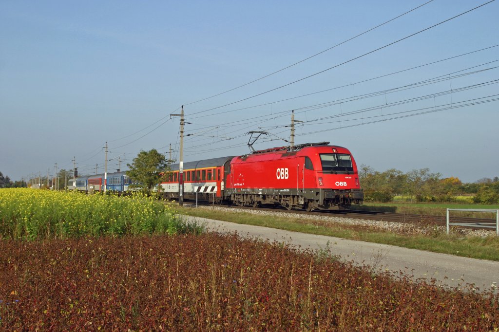 Ich wünsche allen Betrachtern dieses Bildes einen schönen Nationalfeiertag! Natürlich wurde dieses Bild nicht heute gemacht, aber es spiegelt irgendwie unsere Nation wieder. Der Aufnahmeort, die Semmeringbahn war zur Zeit ihrer Errichtung für Österreich eine der wichtigsten Bahnlinie, da sie die für die Wirtschaft essentziellen Mittelmeerhäfen Fiume, Triest und Venedig erschloss. Der Railjet ist zwar nicht der Traum jedes Bahnreisenden, aber er spiegelt die fortschrittliche österreichische Industrie wieder. SGP gibt es nicht mehr, aber die weiterentwickelten SGP-Drehgestelle befinden sich heute in den schnellsten Zügen der Welt und werden in Graz gefertigt. Kriwetz Lukas